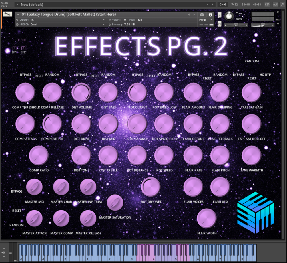 Introducing the Galaxy Tongue Drum Kontakt 7 sampled instrument. A flexible instrument that offers an endless amount of possibilities for musicians, composers, producers, and more. With a varied selection of over 50 custom-made presets (+ over 15 bonus variations and 5 default starting points making over 70 presets total) created using 5 different sampled recording playstyles (bare hands, soft mallet, rubber mallet & more). This sampled instrument allows you to explore various tongue drum tones effortlessly. Whether you're looking to add a calming touch to your tracks or create unique, atmospheric textures, the Galaxy Tongue Drum offers exceptional sound quality and uniqueness, unlike any other tongue drum sampled instrument on the market. Each preset is meticulously crafted to provide a distinct character, ensuring that you have the perfect sound for every occasion. Experience the power of the Galaxy Tongue Drum and unlock a world of creative possibilities in your musical creations.